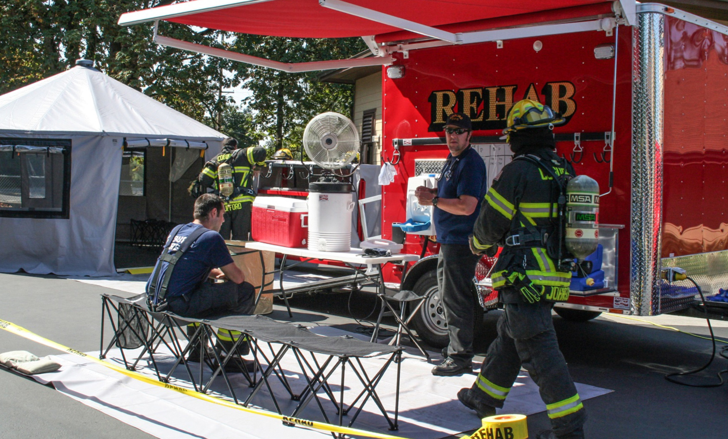 Firefighters can easily become dehydrated while battling a blaze and it's the Auxiliary's jobs to setup rehab clinics at major fire incidents to give our Firefighters a place to rehydrate, rest, and recharge between attacks.